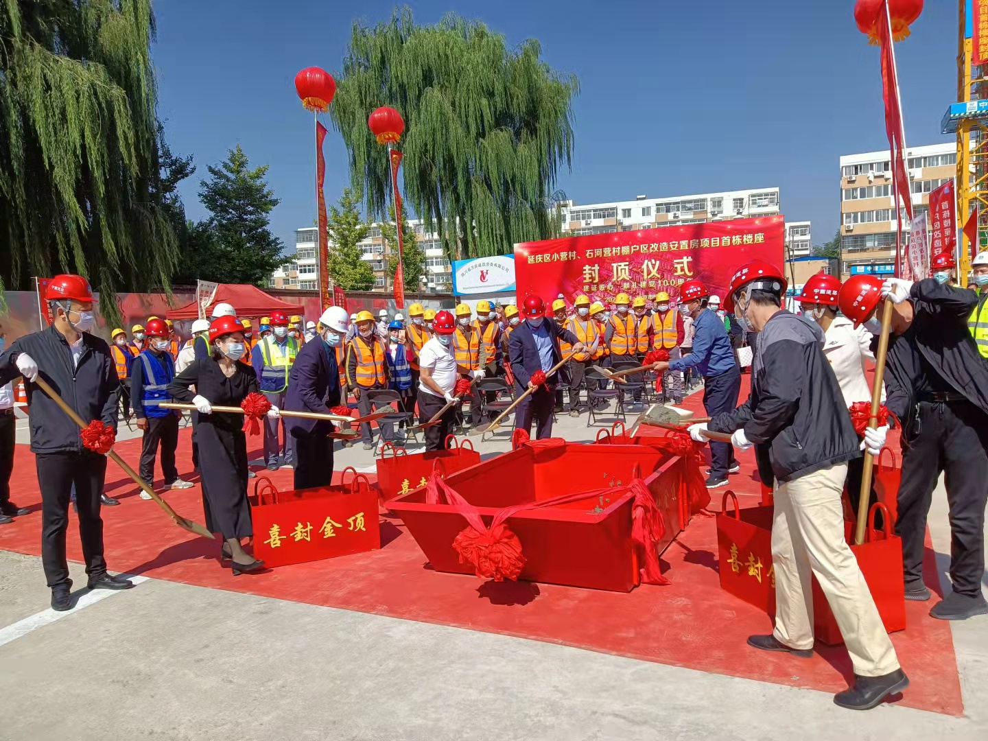 近日,延慶區(qū)小營村、石河營村棚戶區(qū)改造安置房項目施工現(xiàn)場彩旗迎風(fēng)飄揚,棚改項目16#樓封頂儀式隆重舉行。