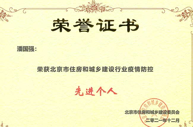 經(jīng)朝陽區(qū)住建委推薦,北京市住建委評選中輕國際潘國強(qiáng)同志為北京市住房和城鄉(xiāng)建設(shè)行業(yè)疫情防控先進(jìn)個人。