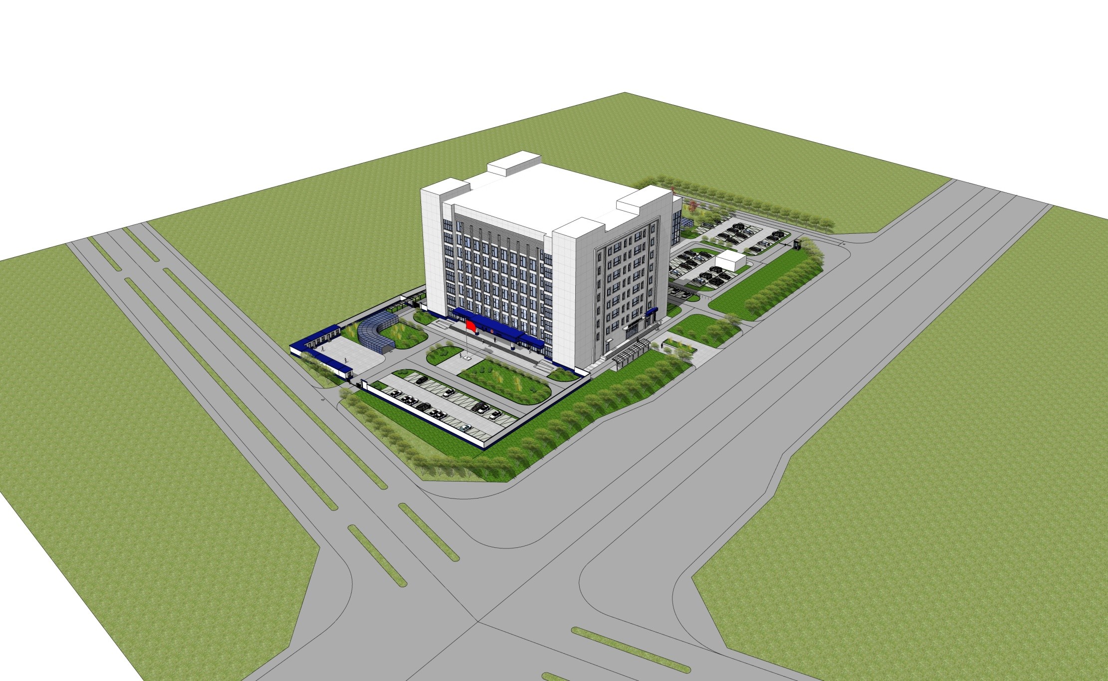 該項目擬將原商場部分1-5層改造為辦公功能,設(shè)計實現(xiàn)各部分功能均有獨立形象出入口,更方便服務(wù)人民群眾。本次辦公設(shè)計在空間沉穩(wěn)大氣、簡潔實用的同時,兼顧文化特色和建筑空間性質(zhì),在不破壞辦公功能建筑形象的基礎(chǔ)上多方取舍以達平衡。